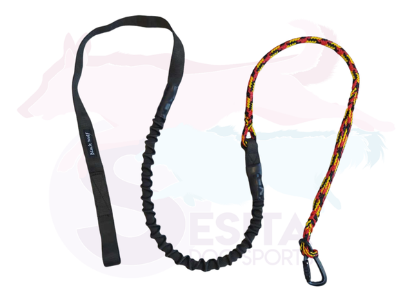 Aan één zijde is er een lus voorzien om deze te koppelen aan uw fiets of step, aan de andere zijde is er een aluminium karabijn met draaisluiting om uw hond aan te bevestigen.